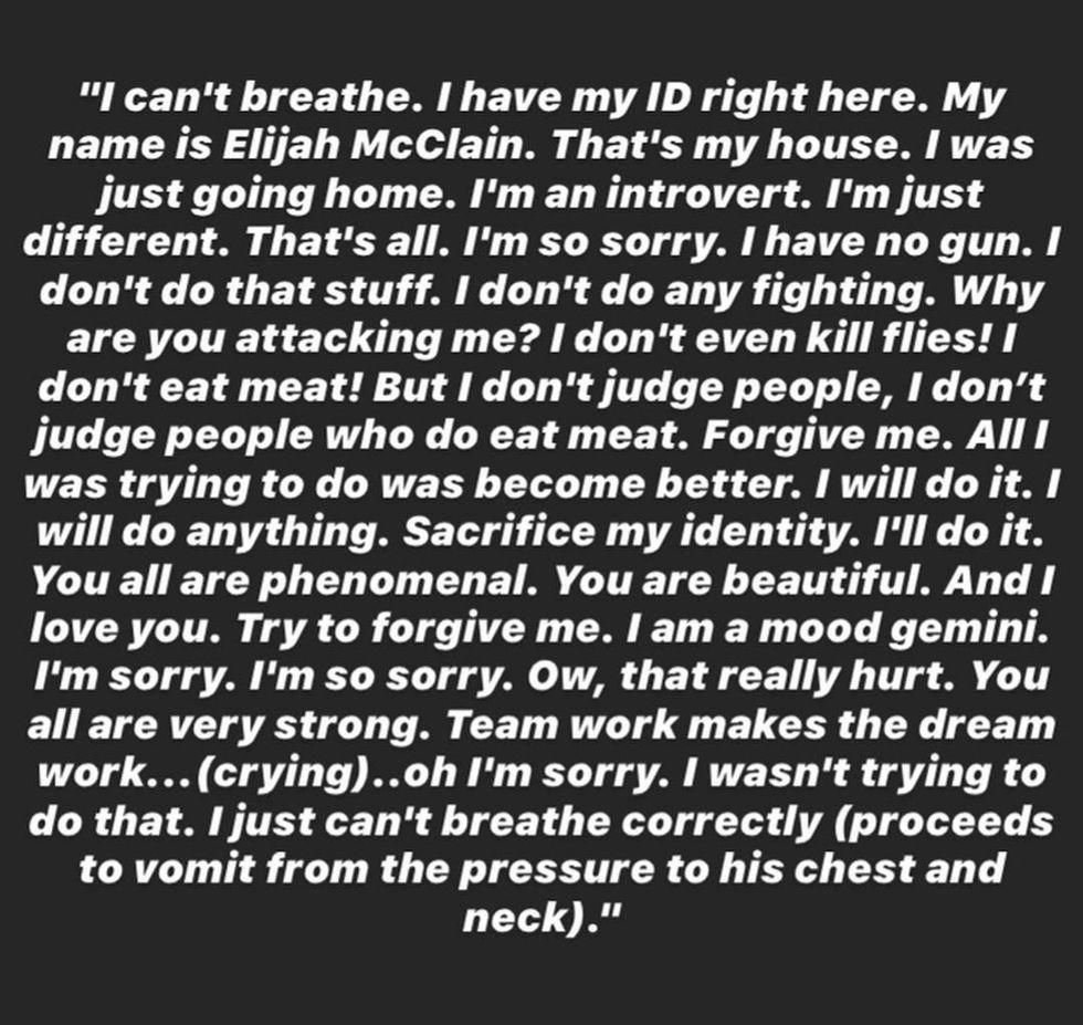 Ms. McClain’s statement also acknowledges that Elijah’s wrongful death at the hands of police is part of a larger story.
