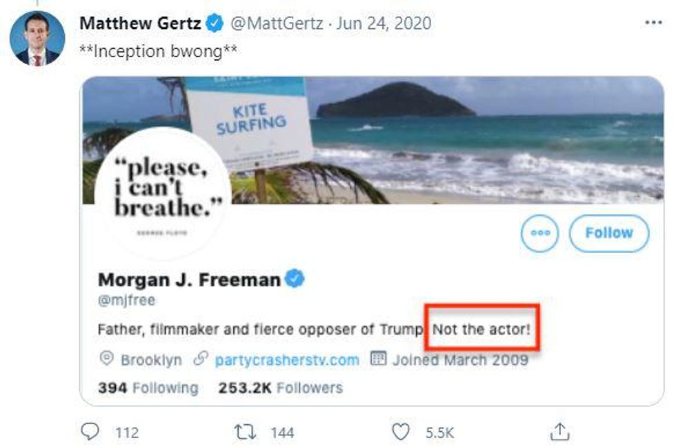 Freeman clearly understood the error and apologized to Gertz. “Truly sorry I accidentally tagged @MattGertz instead of @mattgaetz but let’s harness this great energy and take down the evil Mini-Trump GAETZ now!!!” he responded.