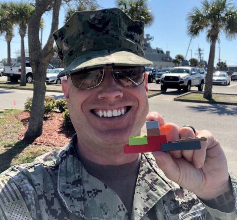 The Lieutenant hopes that his new Lego ship will help his son feel better about him being away.