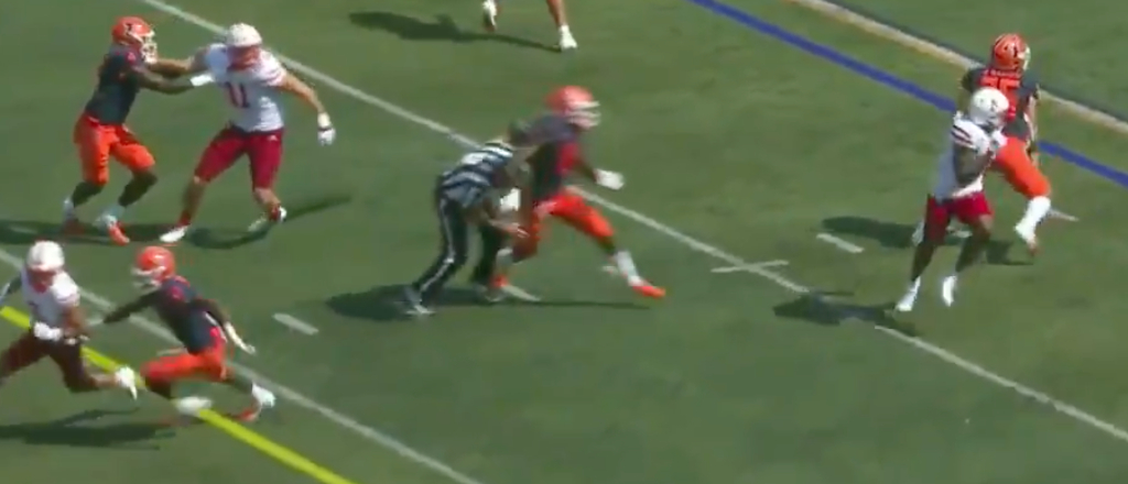 Having to stand in the middle of a football field is certainly not an enviable task, because in addition to all the stuff you have to be on the lookout for — namely when the big fellas on the opposing lines are battling with one another — you have to make sure you do not get obliterated by everyone who goes flying in the middle of the field. It was unclear if either of the officials were seriously injured, but as a result, the game had to go with any officials in that part of the field for a brief period.