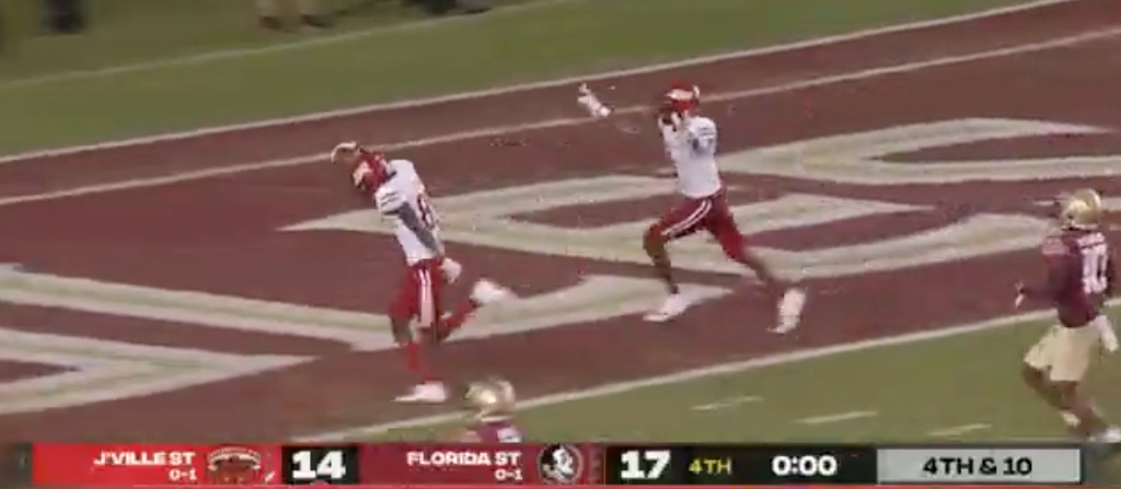 Jacksonville State entered the fourth quarter trailing 17-7. The team played stout defense, scored on an 11-play, 97-yard drive, stayed solid defensively again, and got the ball back with 1:23 left in the game and 83 yards between themselves and the end zone. What happened next: A 10-play, 83-yard drive that took up the duration of the clock and ended with a touchdown to shock the crowd in Tallahassee.