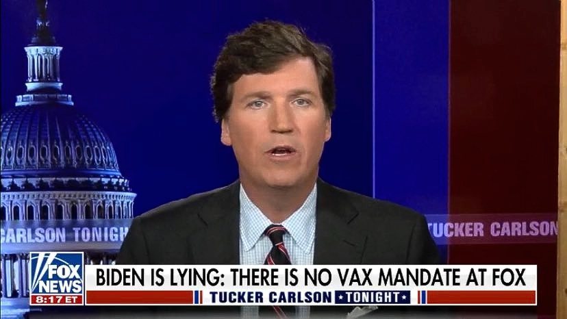 As Raw Story reports, Carlson took aim specifically at Joe Biden, saying the president lied when he claimed that Fox News is mandating that all its employees be vaccinated against COVID—and mocked the network’s anchors for their false anti-vaxxer outrage, considering that 90 percent of them are fully vaccinated and that Fox head honcho Rupert Murdoch is pro-vaxx.