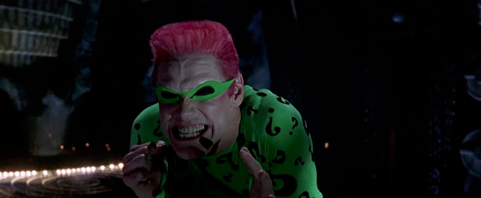 While the world drowns in Jokers, there’s only been two live-action Riddlers in Batman movies: Jim Carrey in Batman Forever and Paul Dano in The Batman. (I’m recusing Frank Gorshin from 1966’s Batman because he, like Cesar Romero, is in a category unto himself.) But the two actors had different takes on the villain befitting the mood of the movies they were in: Carrey plays the Riddler like a rhyming cartoon character, while Dano is a disturbed Zodiac-like livestreamer. Both are memorable in different ways.