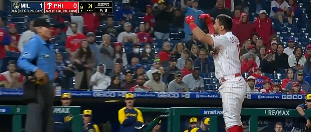 It really is an incredible performance from Schwarber, and the best part is he seemed to be doing it for everyone on both benches who had been frustrated with calls for much of the night, pointing to the Brewers bench to point out that the Phillies weren’t the only ones getting jobbed. Naturally, this led to fans calling for MLB to just make the move to robot umpires because it couldn’t be worse than this.