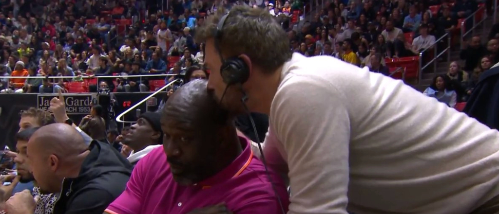 The quarter ended and Affleck had to leave to go do other things during halftime. But before he did that, Affleck turned to the man sitting next to him, as Shaquille O’Neal got courtside seats to the game. He gave the big fella a hug, then leaned over and kissed him on the top of his head.
