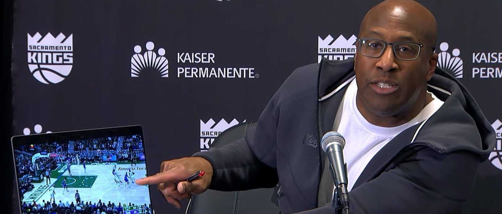 Mike Brown lights into the refereeing tonight in the Kings loss in Milwaukee. Brings out a laptop in his press conference to show film of the non-foul and foul that has him ticked off. Here is the five minute soundbite. pic.twitter.com/Q8InpkFh8B