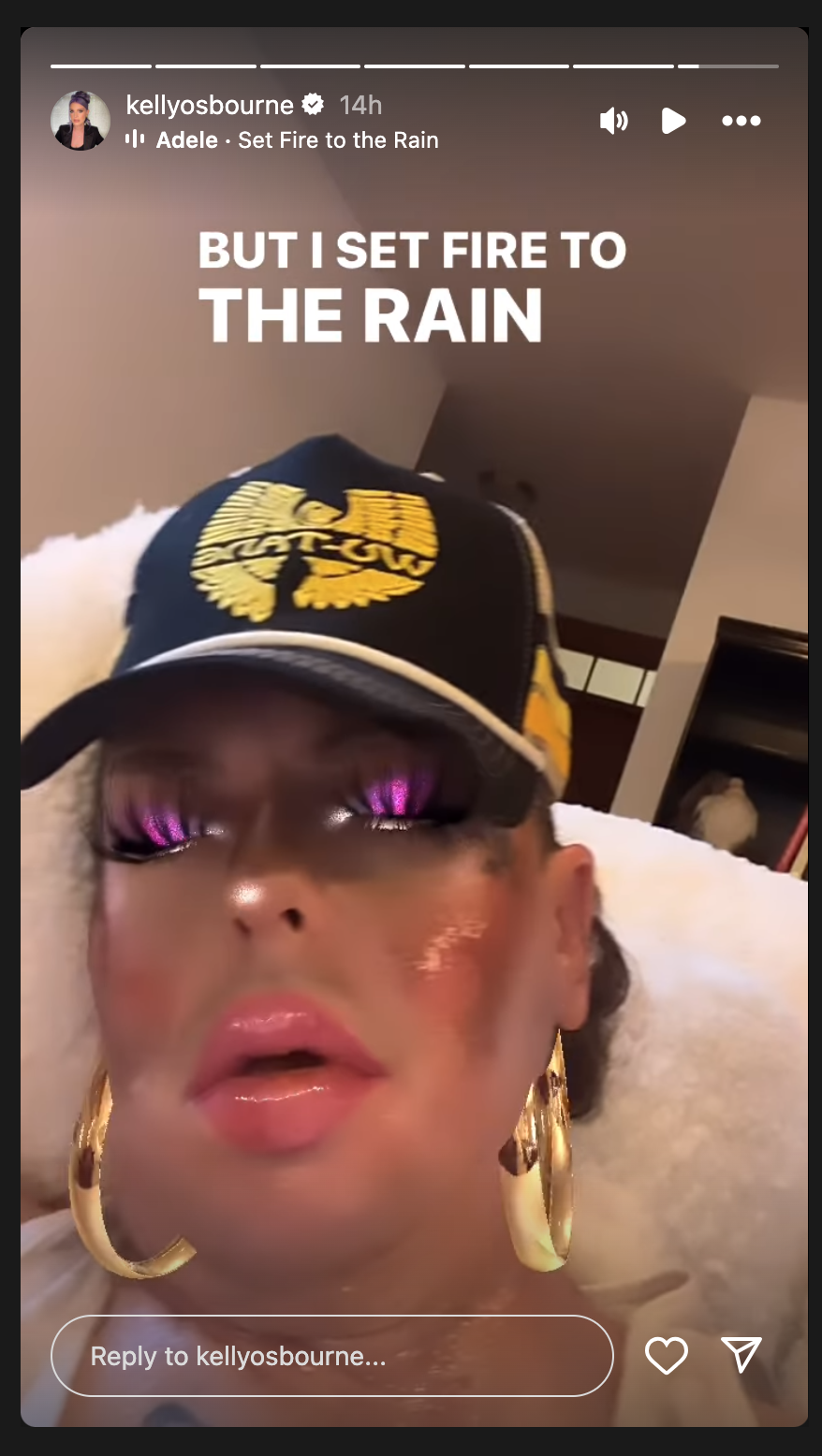 In a series of images uploaded to her Instagram stories, Osbourne created a playlist of tracks fit for the tragic occasion. The songs plastered on photos of an agonized Wilson included Adele’s “Set Fire To The Rain,” Billy Joel’s “We Didn’t Start The Fire,” Jerry Lee Lewis’ “Great Balls Of Fire,” The Prodigy’s “Firestarter,” and Alicia Keys’ “Girl On Fire.”