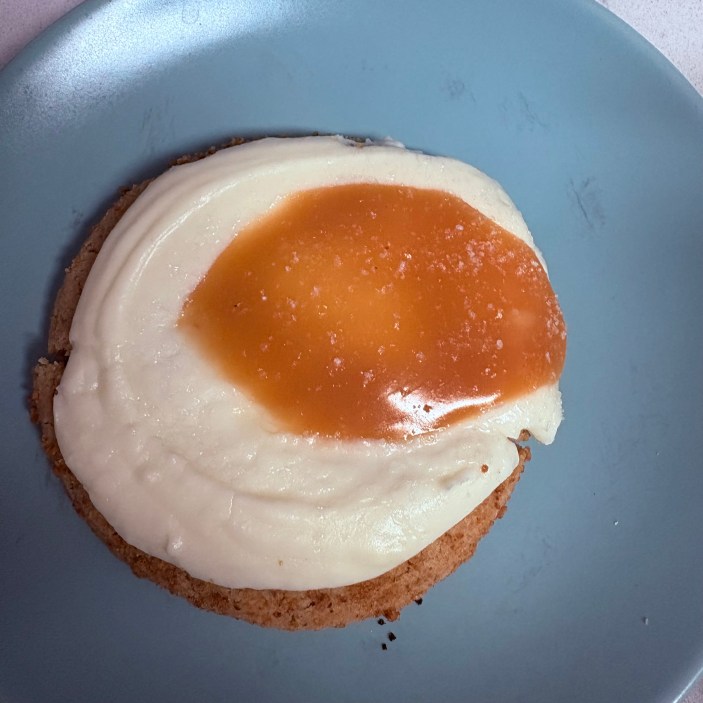 This cookie features a crumbly graham cracker cookie base, a thin layer of cheesecake frosting, a heavy serving of caramel, and a touch of sea salt. Sounds almost like a cheesecake, but the ratio of graham cracker to frosting is skewed, offering much more of the former, which makes this cookie way more palatable.
