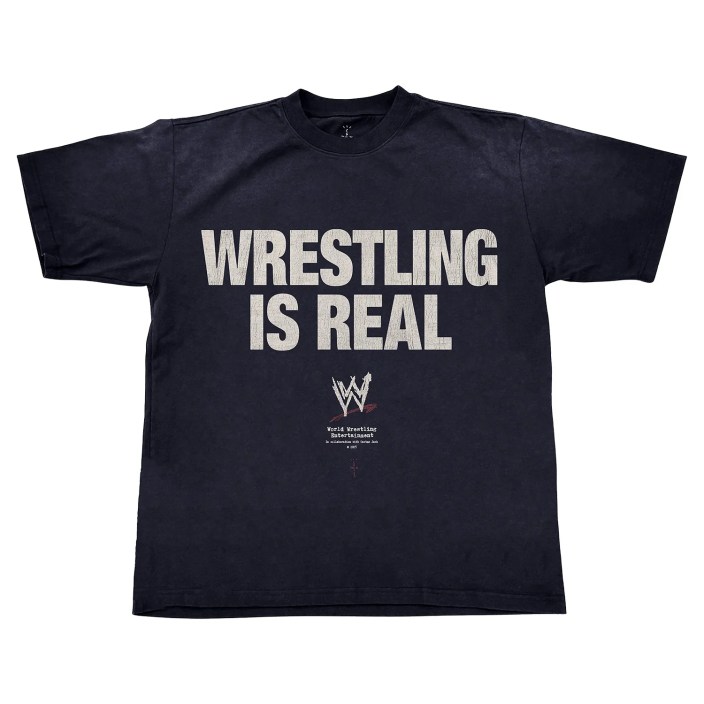 The report transcended target demos, prompting audiences who might not look twice at Cody Rhodes on the street to express their skepticism. After all, isn’t wrestling fake? Not according to the new T-shirts promoted by the WWE and Travis’ Cactus Jack brand — which is, by the way, named after one of WWE vet Mick Foley’s many, many in-ring personas. The shirts feature a black-and-white photo on the back from Elimination Chamber with The Rock, Cena, and Travis all standing side-by-side (Cody, laying prone on the ground, wouldn’t have fit). The front reads, simply, “Wrestling Is Real.”