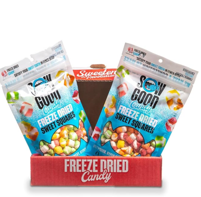Sow Good already produces some of the best freeze dried products on the market and they’re not just doing candies and gummies, they’re also creating ice cream products and marshmallows. Their sweet squares are a solid option in the freeze dried candy world.