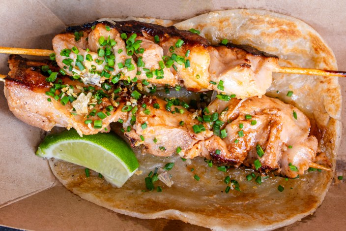 Austin is synonymous with tacos, so if you’re looking to check that box while enjoying the fest, this award-winning trailer (recipient of a 2024 Michelin Bib Gourmand award) is spot-on. The menu offers a straightforward mix: a trio of either suadero, carnitas, or campechana tacos, or a quesadilla with your choice of the three proteins. In our opinion, suadero is the way to go — it’s basically Mexico City-style brisket topped with traditional and fantastically fresh cilantro, chopped onions, and lime.