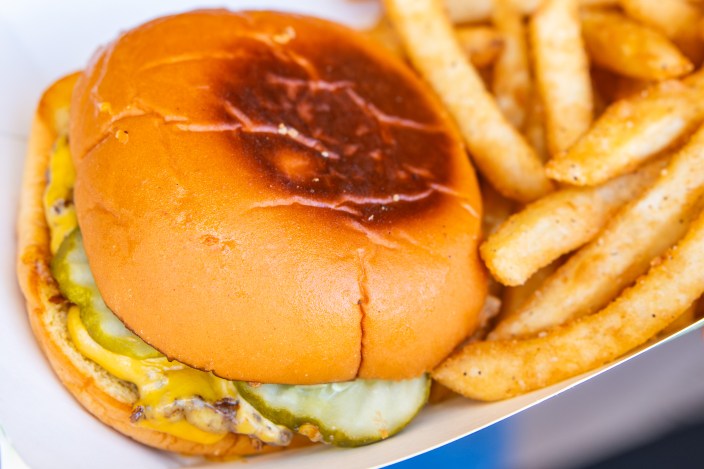 Though this locally beloved butcher shop shuttered last summer, it’s still making waves with comfortably high-brow-low-brow options at the fest. The sole entree, a wagyu smash burger, does the trick, featuring the classic ingredients of pickles and American cheese on a top-quality patty (or two, for a few extra bucks). The meat is moist but not overly greasy, the bun lightly toasted, and the pickles notably fresh, providing a satisfying crunch (add bacon for extra crispiness). It’s a perfect walking-friendly option for those needing to keep moving quickly, and we’d recommend pairing it with the beef fat french fries. They’re thick and flavorful but light enough that the full meal will fill you without inducing sluggish-ness that might prevent you from staying hyped from the headliners.