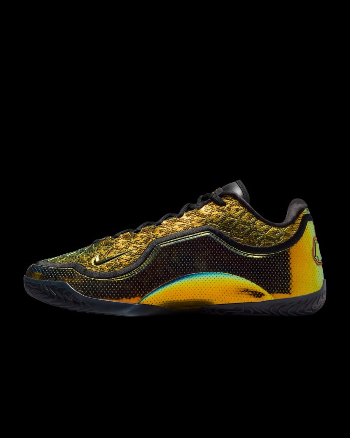 LeBron’s latest XXIII colorway serves as a victory lap for King James. The sneaker, dubbed “Uncharted,” (a reference to LeBron’s legacy as the only player who has scored over 40K points) is dressed in a glittering holographic gold colorway with a lightweight Flyknit upper and a full-length ZoomX midsole.