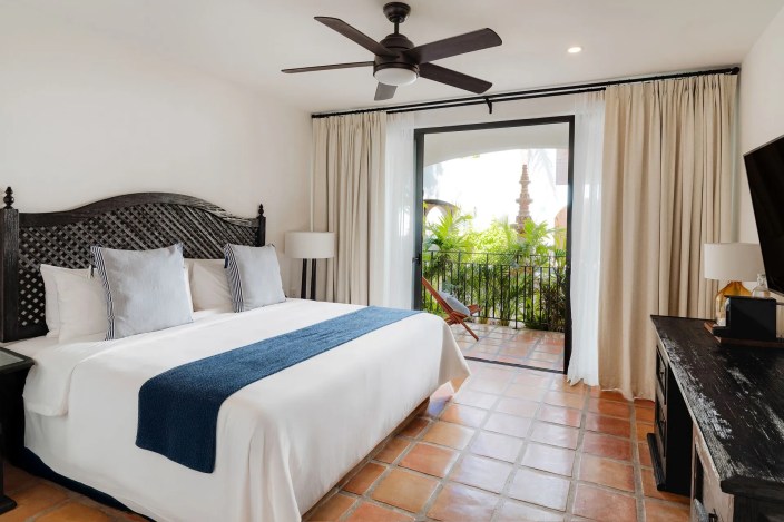 Seventy rooms in a compact setup — guest rooms and suites with Mexican-contemporary finishes, ceiling fans, and that inside-out courtyard rhythm.