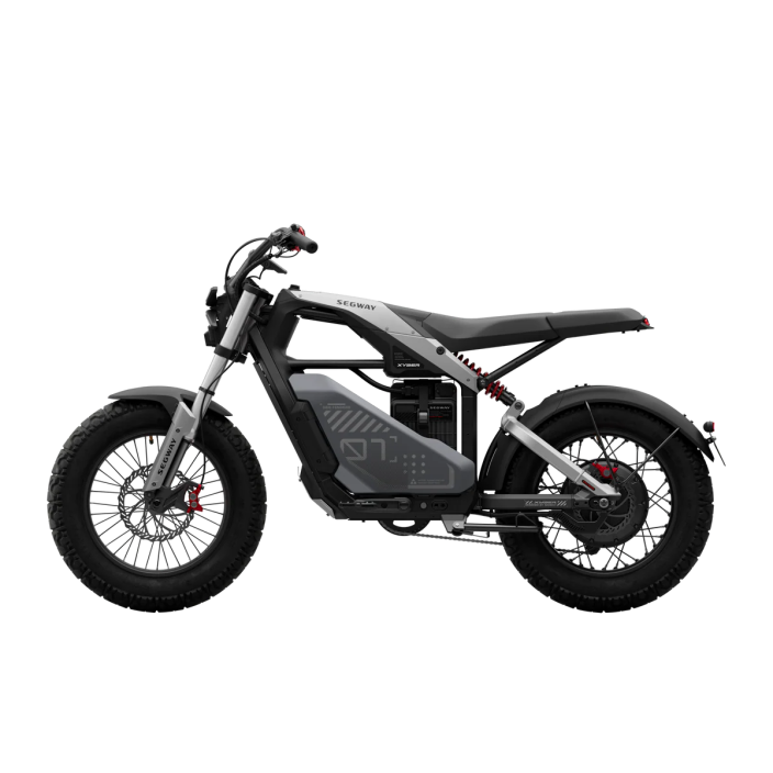 Most e-bikes still look like bicycles that happened to touch a live wire. The Segway Xyber looks like it rolled out of a sci-fi storyboard — low-slung moto frame, fat 20×5-inch tires, glowing headlight… real Mad Max shit. Underneath that future-chopper vibe is ridiculous performance: a rear hub system that can zing you from 0–20 mph in about 2.7 seconds, with peak power up to 6,000 watts and torque up to 175Nm if you run dual batteries.