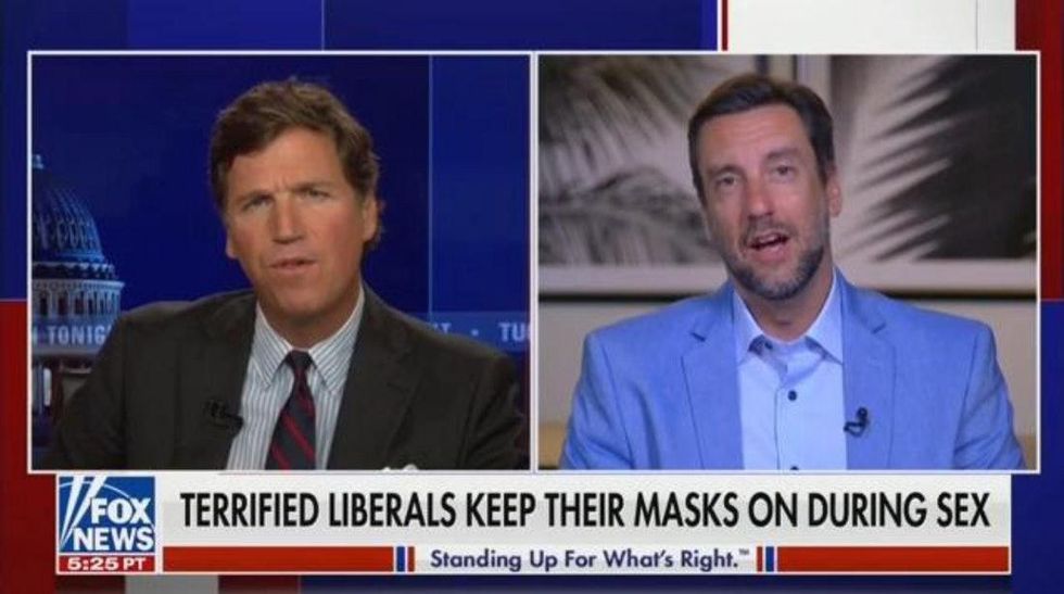“While part of me was excited to have duped a dweeb like Tucker Carlson with such an obviously phony scenario, I was disturbed to have provided chum for the pro-Covid, bleach-drinking lunatics in his audience,” he writes. “And unless I decided to remove my own “smelly and soiled” mask and reveal myself, no one would ever even know that Carlson had been taken in.”