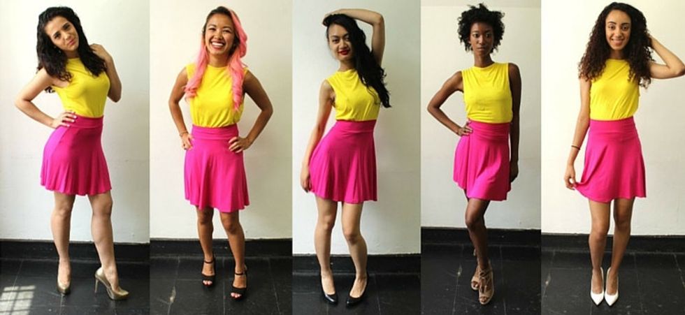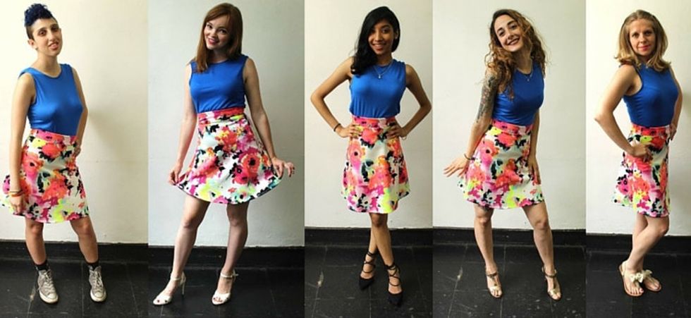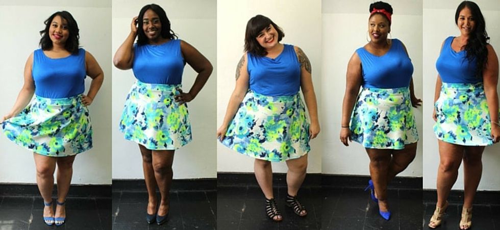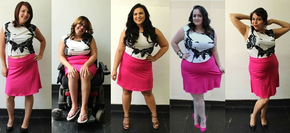 Then, she put five women at a time in the same size of skirt and shirt to show how diversely beautiful human bodies are and to prove that everyone looks different in clothes no matter what size they have on.